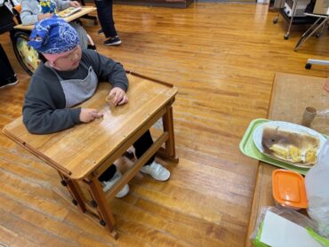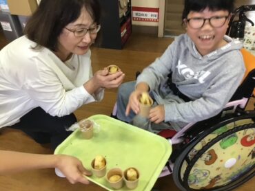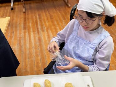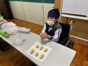 オーブンで焼いて完成です。食べるのが楽しみです。材料のサツマイモは、小学部の畑で子供たちが育ててきたものです。