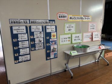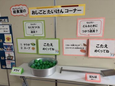 食堂では、子供たちからの給食に関する質問に答える場面も設定されました。